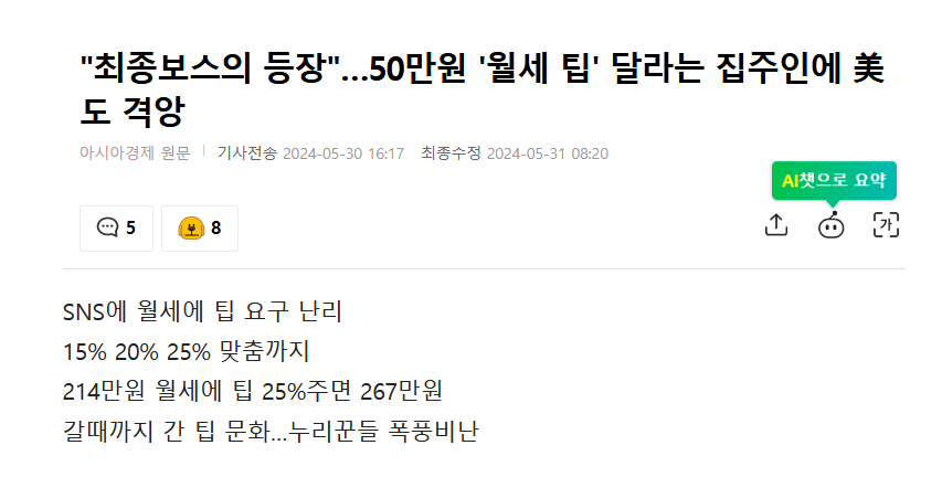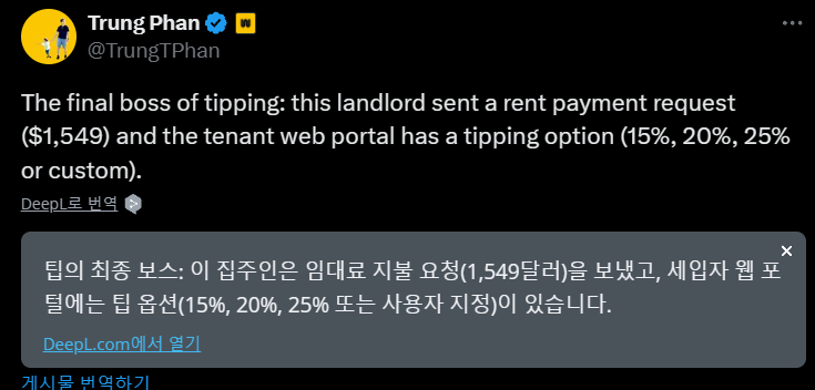 건물주인 나도 팁을 요구해도 되지 않을까? 싶은 듯..