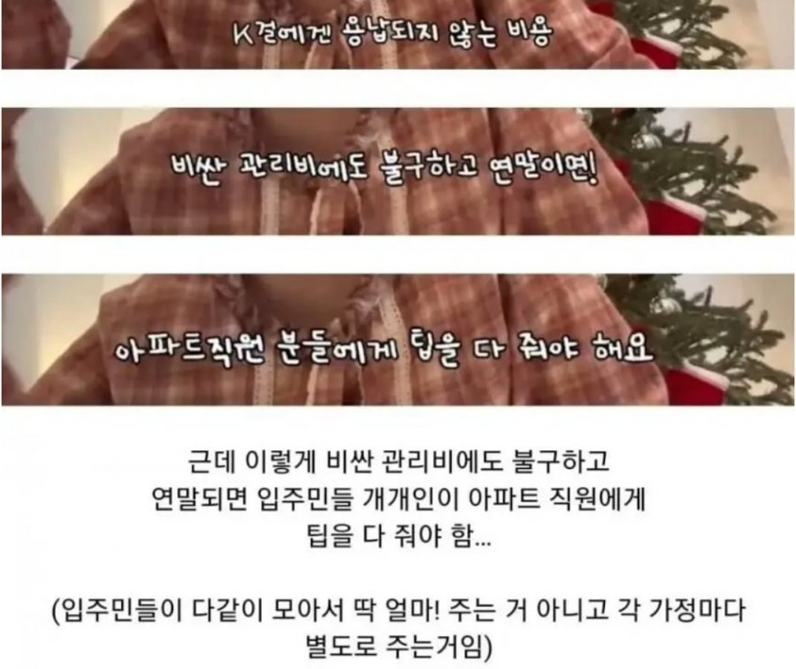명절마다 입주민들이 아파트 직원들에게 팁 주는 문화가 있었다고 하는데