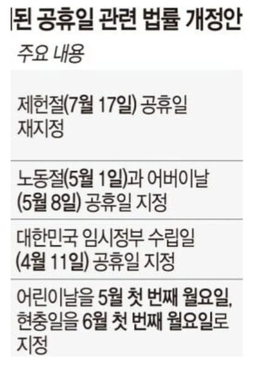 어버이날과 노동절, 공휴일로 지정되나? 🤔