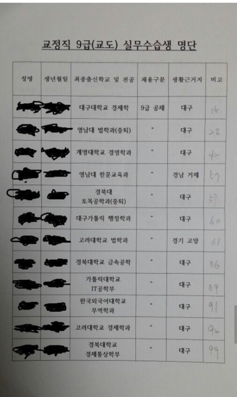 교정직 9급 공무원 실무수습생들의 학력 자료가 화제가 되고 있습니다. 🧐