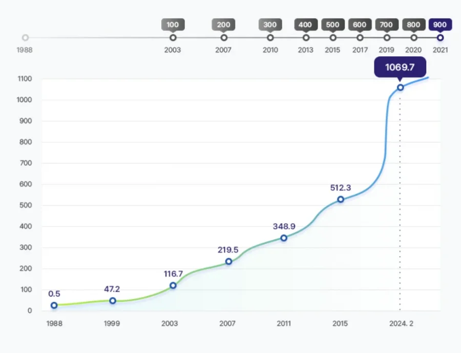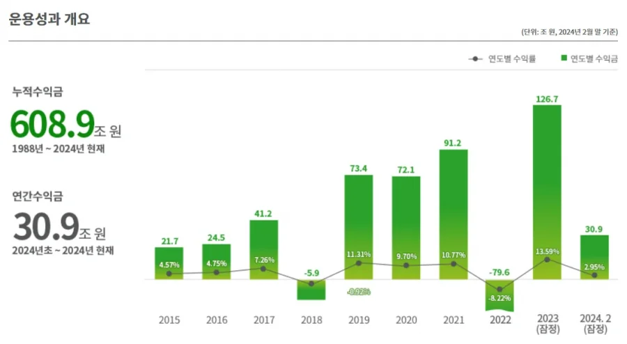- 1988년 시작 이후 현재까지 누적 수익은 608.9조 원에 달합니다.