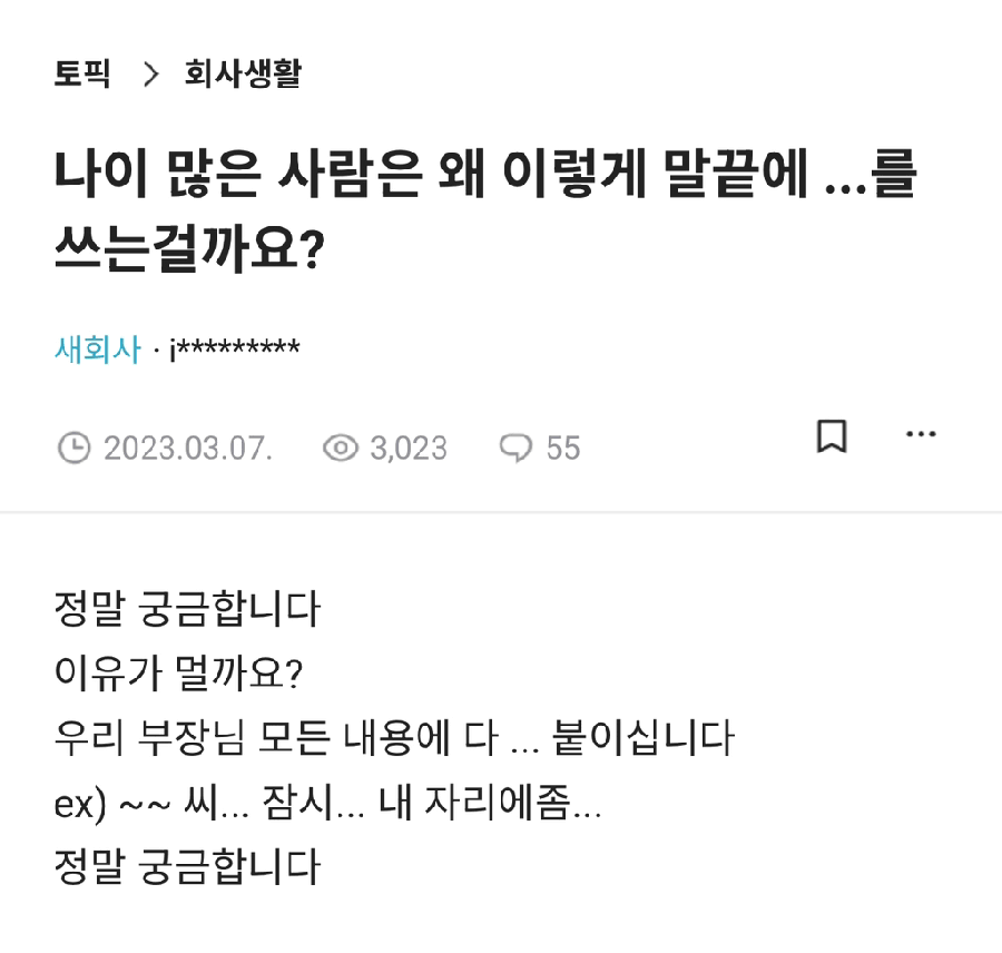 나이 많은 분들이 말끝에 **"..."(점 세 개, 말줄임표)**를 자주 붙이는 이유, 정말 궁금하죠? 🤔