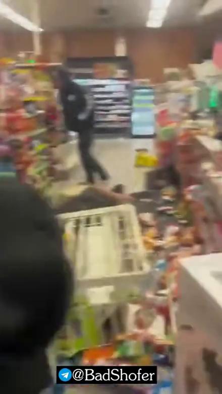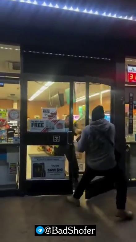 😨 한 매장의 문 앞에서 직원으로 보이는 사람이 뭔가를 막으려 하는데, 상황이 상당히 심각해 보입니다.