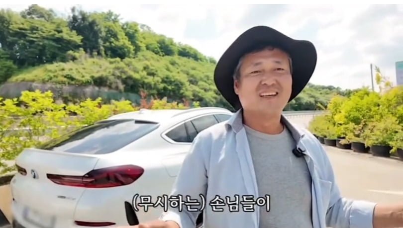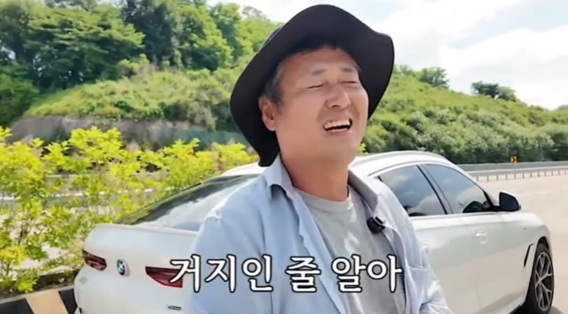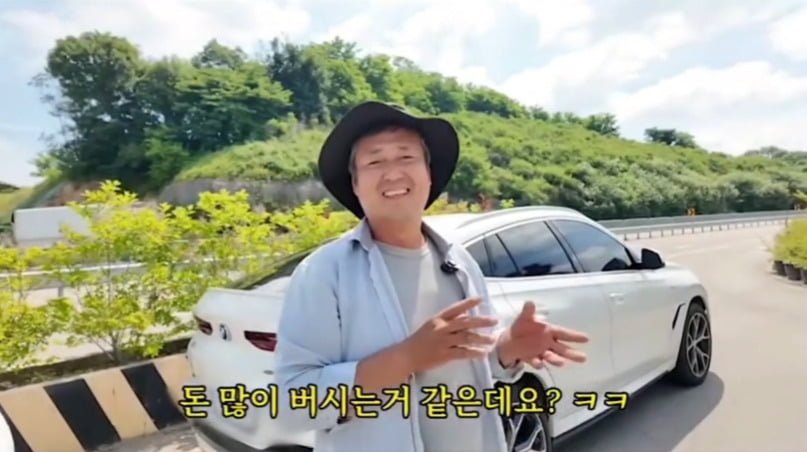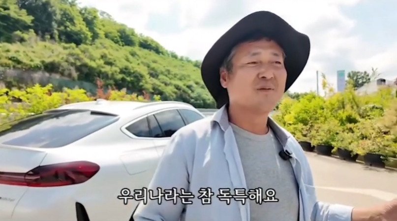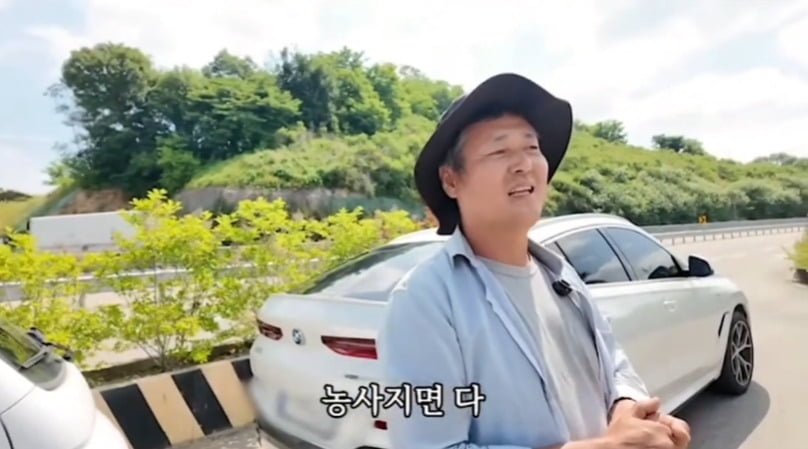 평범한 농부처럼 보이지만, 뒤에 서 있는 BMW X6를 보면 단순한 농부가 아니라는 게 느껴지죠. 사람들이 "돈 많이 버시나 봐요?"라고 하면 **"농사 지으면 다 이렇습니다"**라고 유쾌하게 대답하는 모습이 정말 재밌어요.