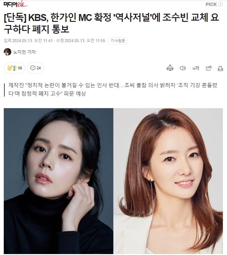 KBS 사측이 원하는 진행자를 정치중립성 문제로 제작진이 거부했더니 프로그램 잠정적 폐지