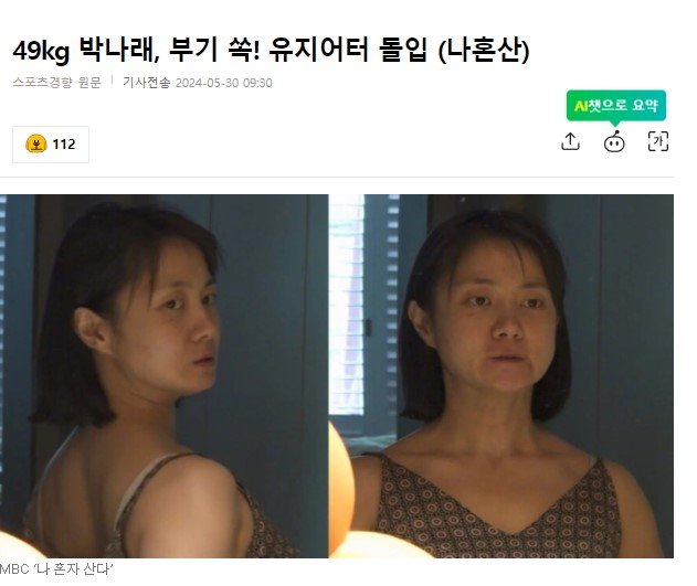 49kg 박나래, 부기 쏙! 유지어터 돌입 (나혼산) : 네이트 연예