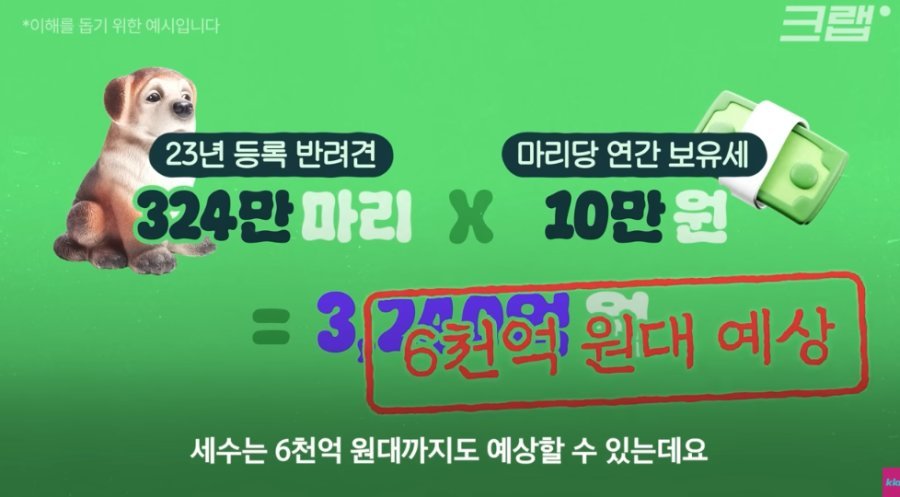 올해 기준 등록된 반려견만 해도 무려 324만 마리! 여기에 마리당 연 10만원씩 세금을 부과하면, 단순 계산만 해도 연간 3,240억 원, 최대 6천억 원대 세수까지 기대된다고 해요. 💰