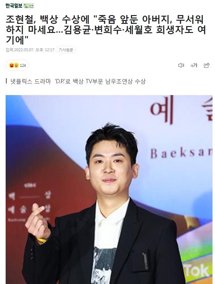 DP에서 조석봉 역으로 미친 연기력을 선보였고 당시 이 연기로 역시 백상에서 조연상 수상했던..