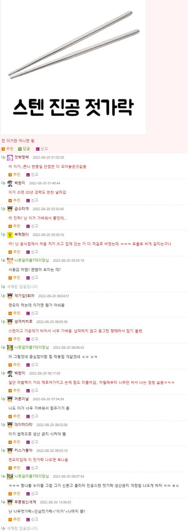 중국젓가락처럼 끝이 둥근모양이라 납작한 쇠젓가락보다 잘 안집히긴 하던데 재밌네요.ㅋㅋㅋ