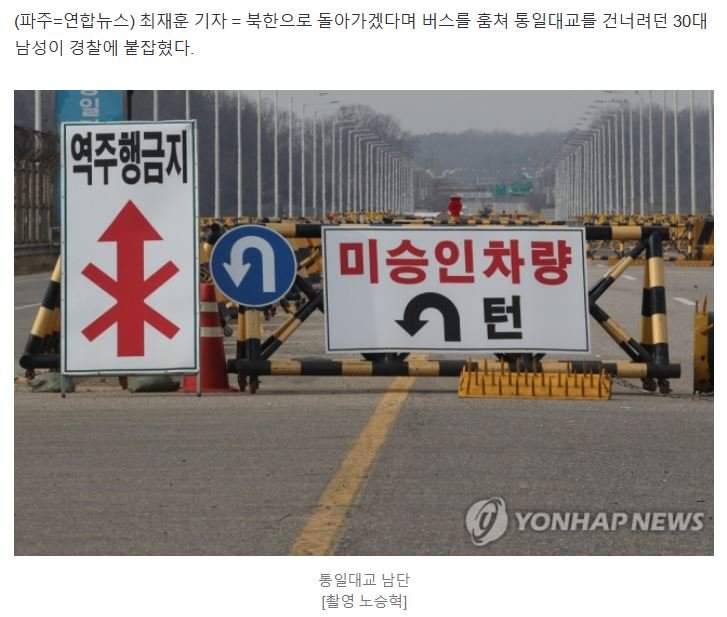 "북한 돌아가고 싶어"…버스훔쳐 통일대교 건너려던 탈북민 체포