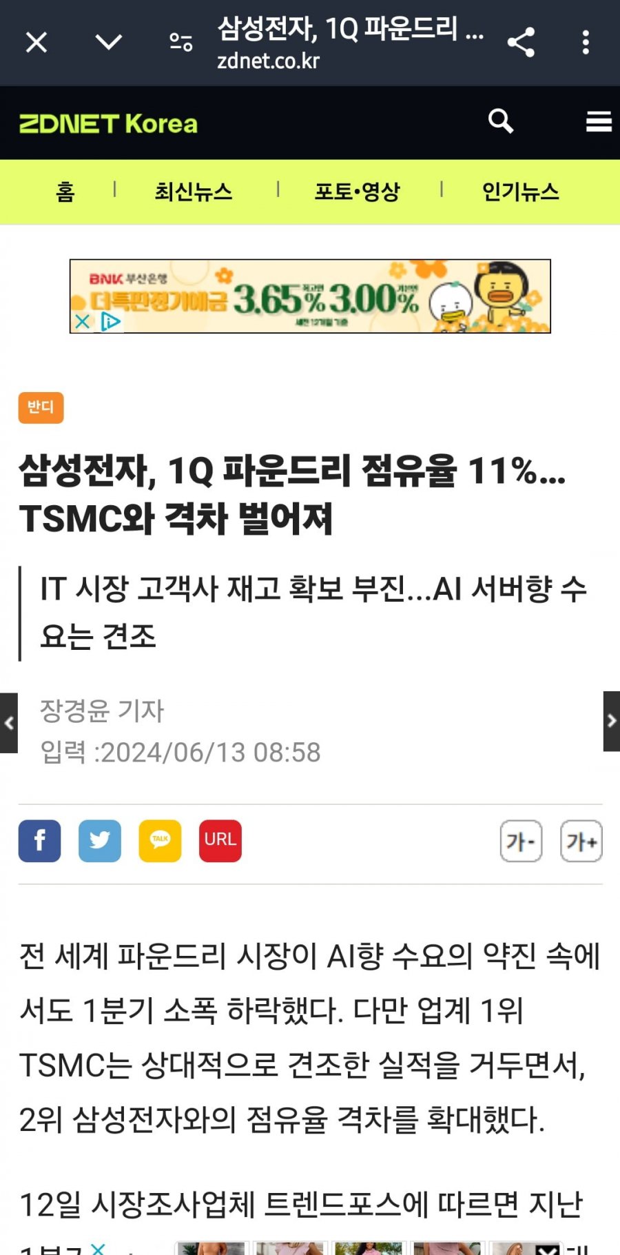 삼성전자, 1Q 파운드리 점유율 11%…TSMC와 격차 벌어져