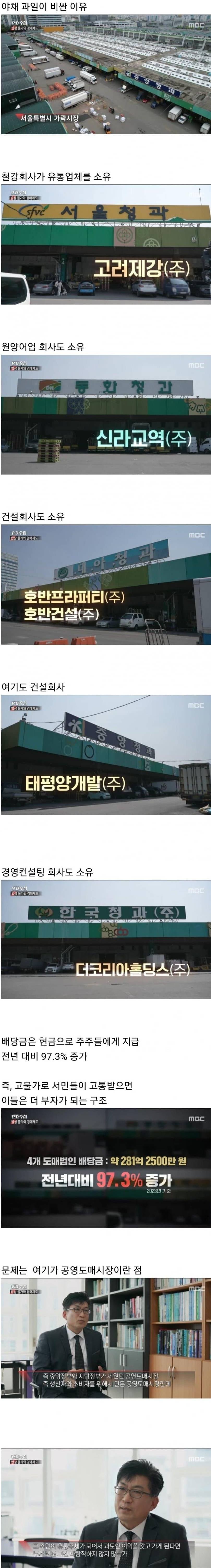 - 이런 회사들이 도매시장 유통업체를 소유하고 있다 보니, 시장의 유통 구조가 고가의 배당금으로 연결되는 구조가 되어버린 겁니다.