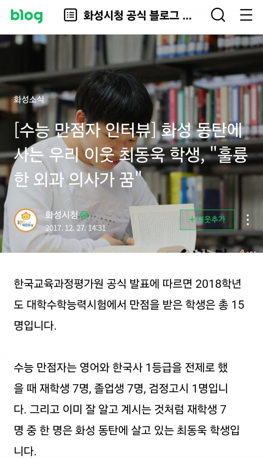 화성시청에서 오래전 네이버 블로그에 올린 정보
