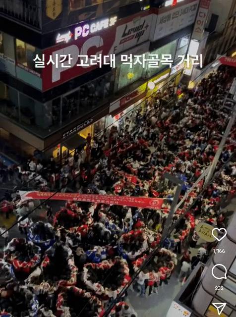 이날 밤 고려대 주변의 모든 음식점과 술집은 풀 가동 상태였다고 하네요. 사장님들은 미소를 감추지 못했겠죠? 😂