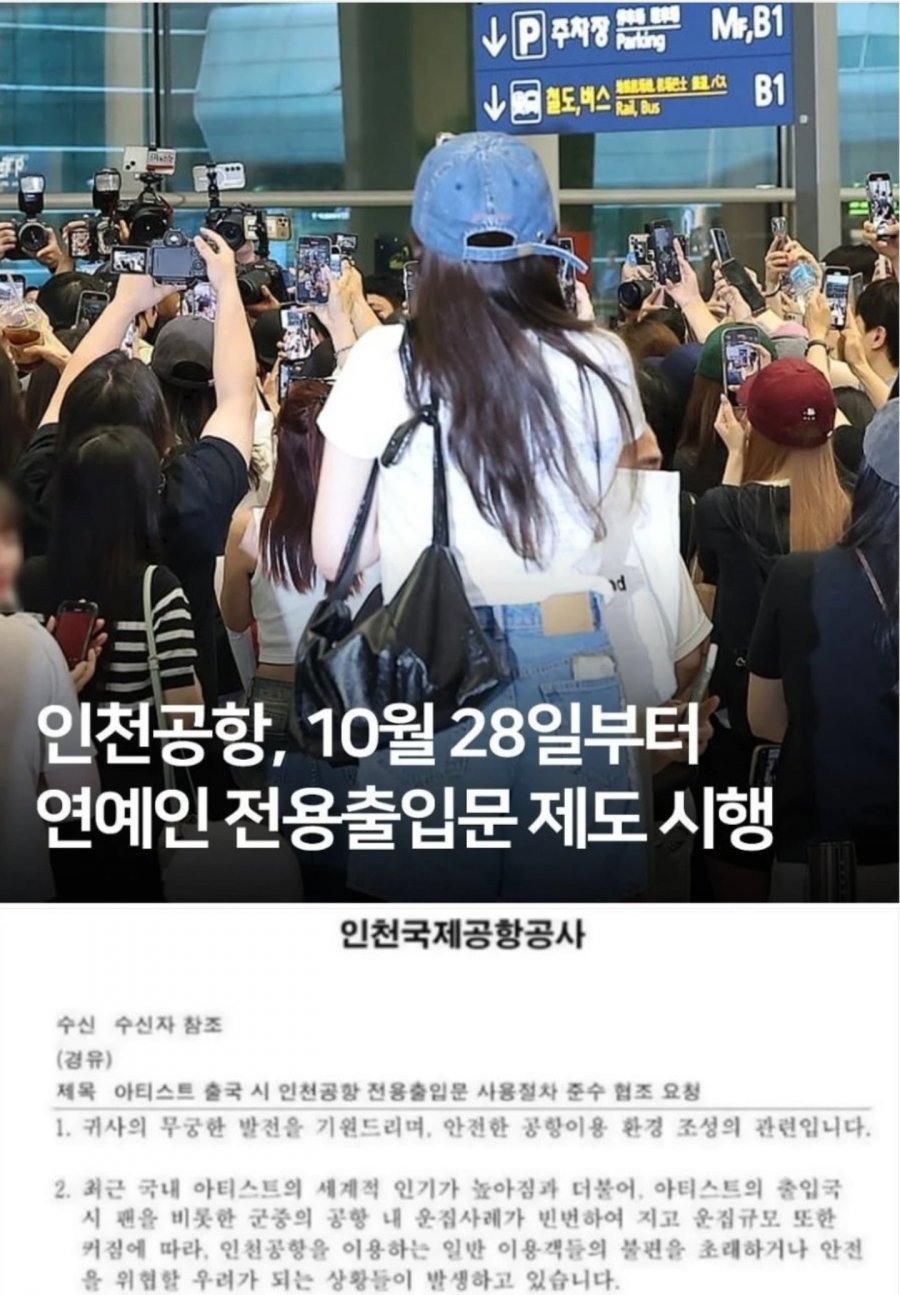 인천국제공항이 오는 10월 28일부터 연예인 전용 출입문 제도를 시행한다고 밝혔어요! 📢