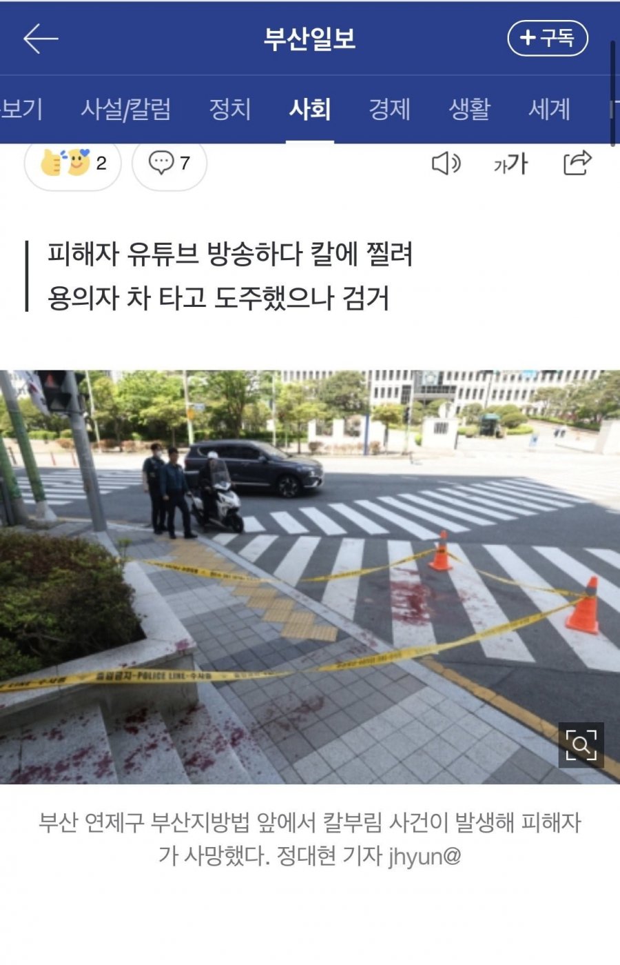 부산 피습 유투버 치시면 당시 라이브 벤쯔 있네요