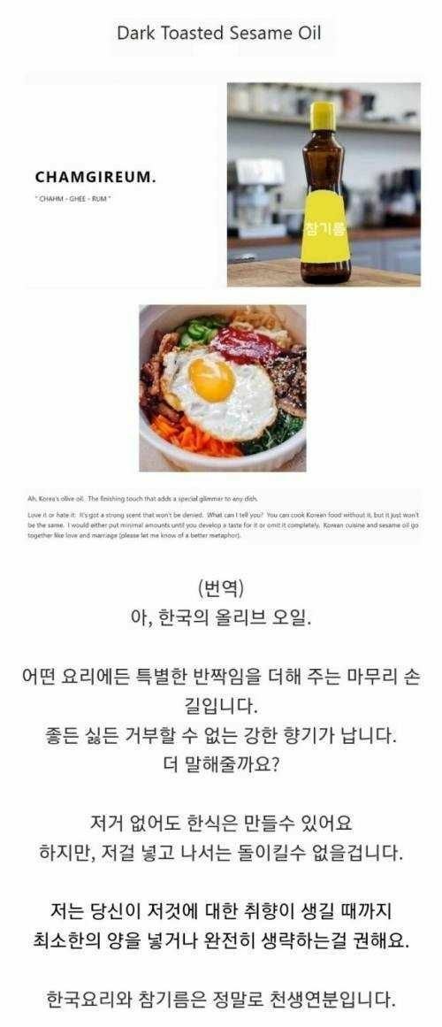 이거 진짜 공감 100%죠! 😆 참기름 = 한국 요리의 필수템
