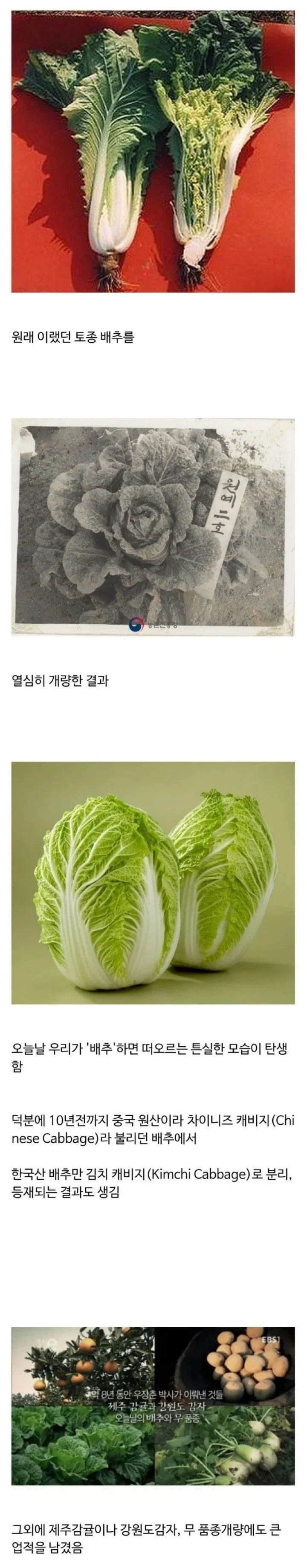 🌱 배추뿐만 아니라 감귤, 감자, 무 품종 개량에도 큰 업적!