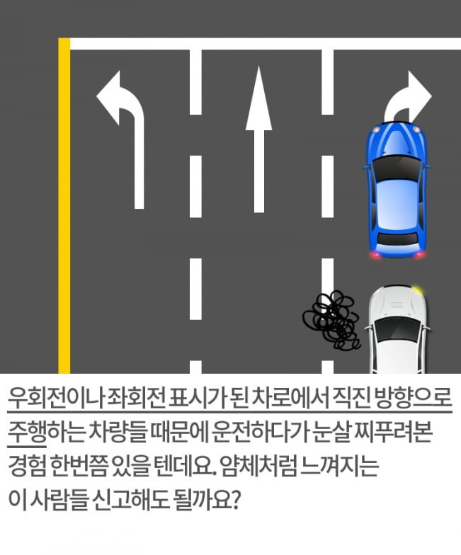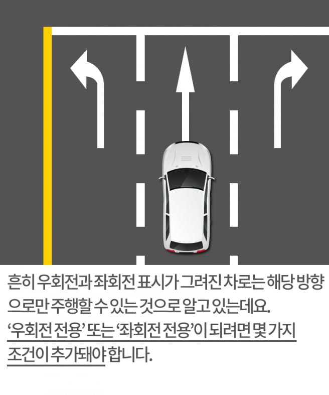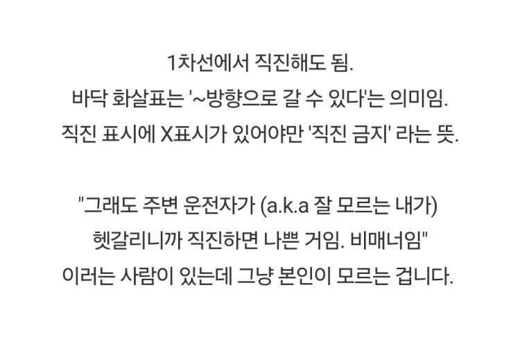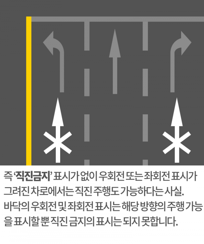 - 하지만 법적으로 화살표는 해당 방향 주행 가능 표시일 뿐입니다.