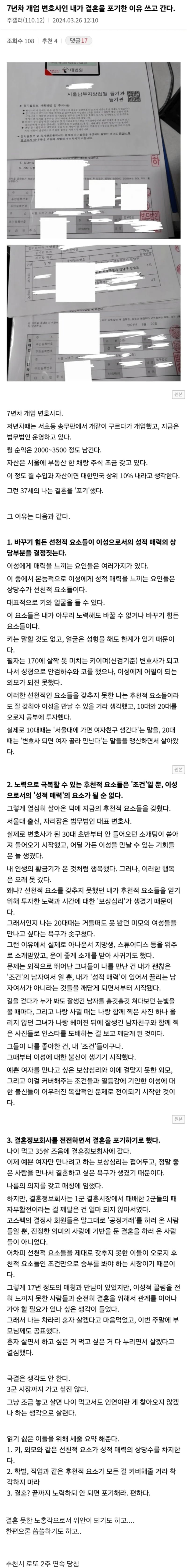 오늘은 변호사로서 월 3000 이상을 벌지만, 결혼을 포기한 이유를 솔직하게 밝힌 글이 화제예요. "7년 차 개업 변호사"라는 분이 전하는 현실적인 고민들, 한번 들어볼까요?