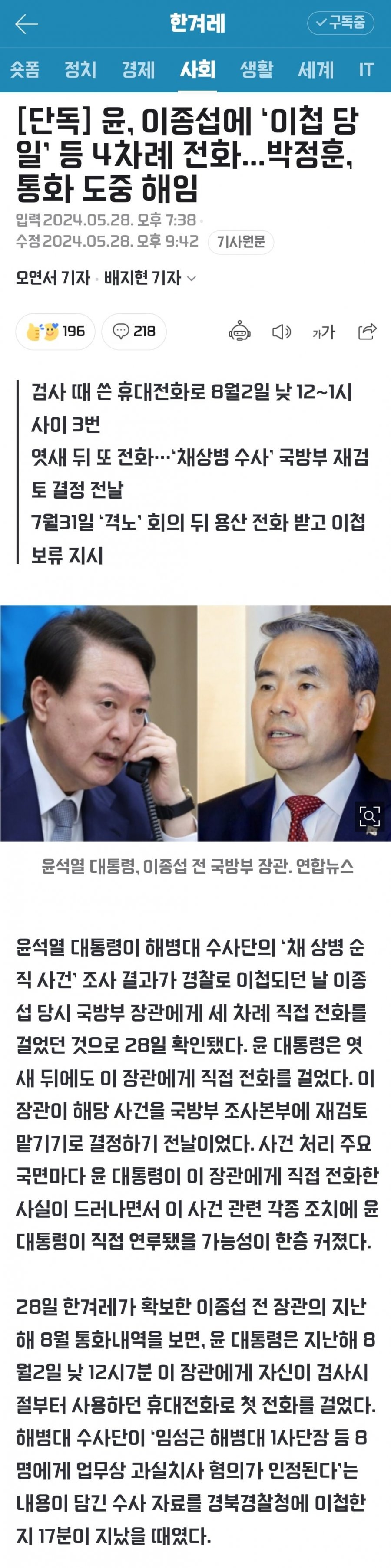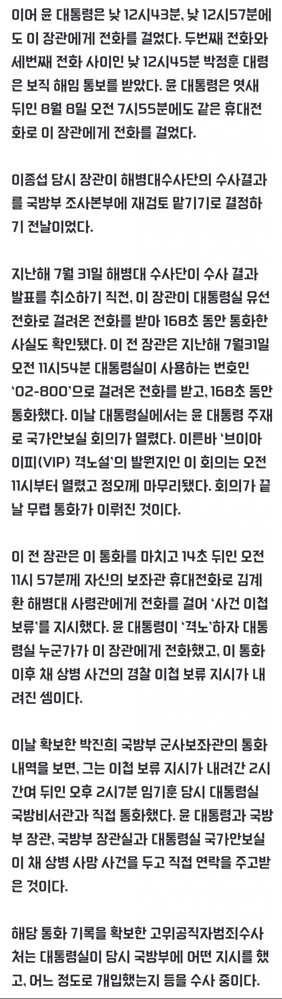 윤 -> 이종섭 휴대전화 수차례