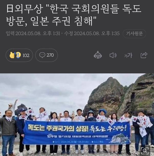 日외무상 "한국 국회의원들 독도방문, 일본 주권 침해"