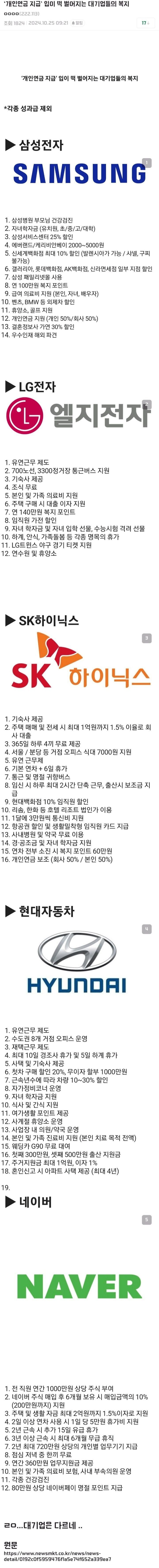 대기업 취업을 꿈꾸는 많은 이들, 그 이유 중 하나는 바로 놀라운 복지 혜택 때문이죠! 이번에 정리된 국내 대표 대기업들의 복지 혜택을 살펴보면, 정말 부럽지 않을 수 없습니다.