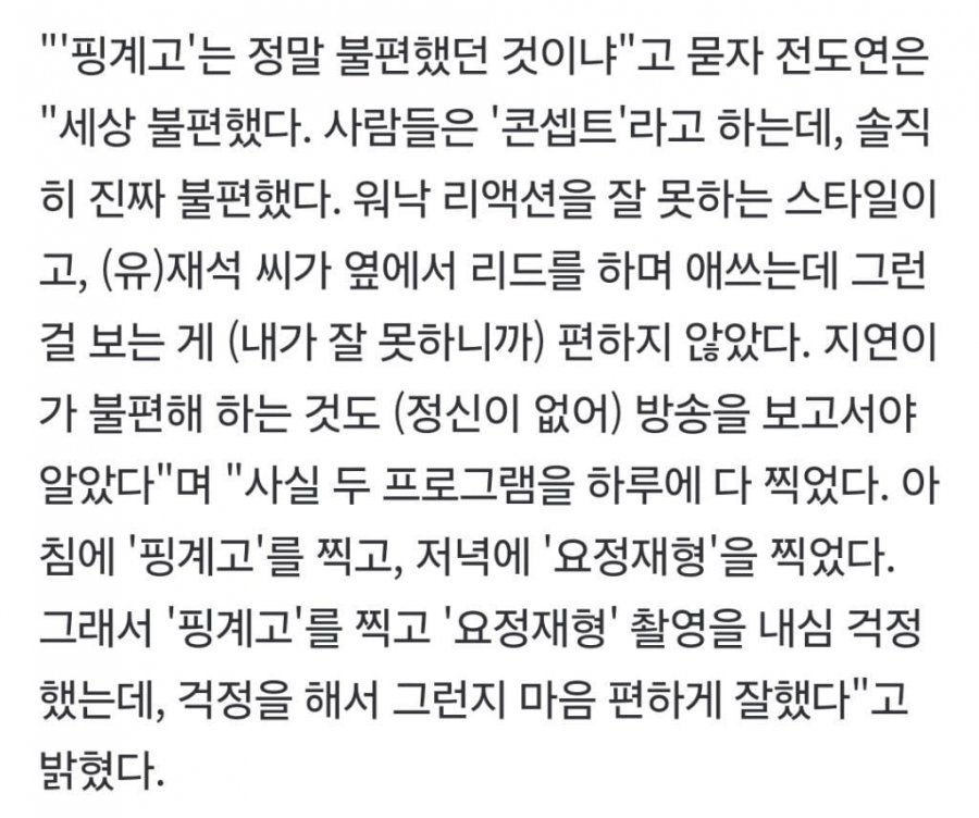 핑계고가 정말 불편했다 발언하는거 보면 ㅋ