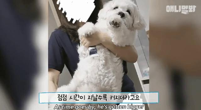 사진 속 보호자는 처음 강아지를 입양할 때 "말티즈" 라고 들었다고 해요. 하지만 자라면서 점점 뭔가 이상하다는 걸 느꼈죠.