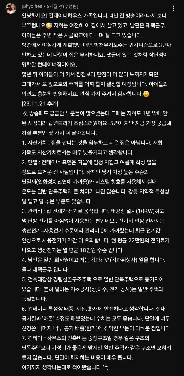 안좋은 댓글도 있으나, 한번쯤은 살아보고싶은 집입니다.