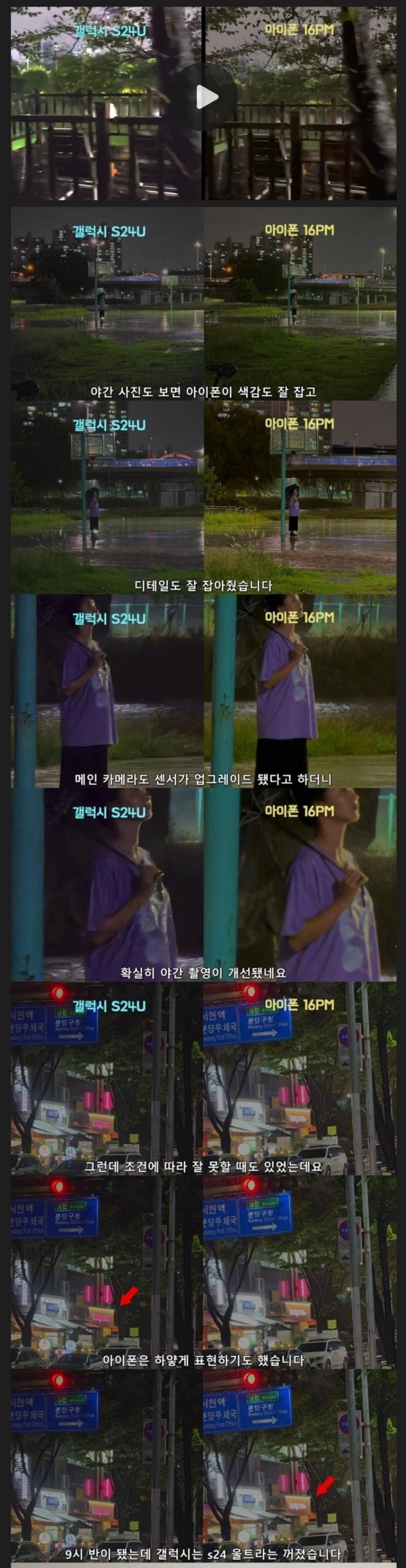 - 특히 갤럭시 S24 울트라는 야간 모드가 강력해서 어두운 곳에서도 디테일을 잘 살림