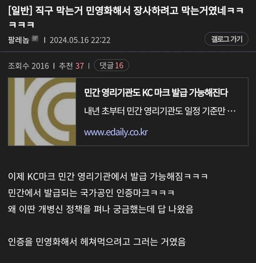 kc인증 민영화 떡밥과 함께 갑자기 재평가된 기사