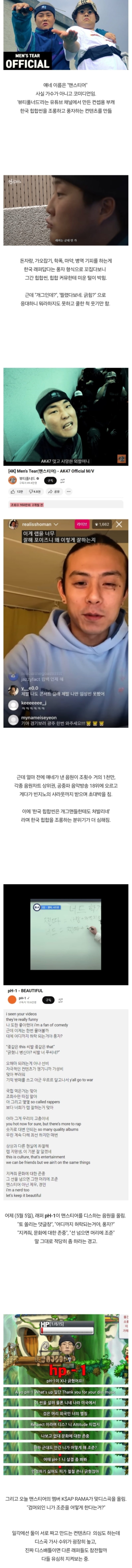 - AK47: 디스곡 *"Men's Tear"*를 발매하며, **"우리는 단순한 재미로 평가받을 문화가 아니다"**라는 메시지를 담았습니다.