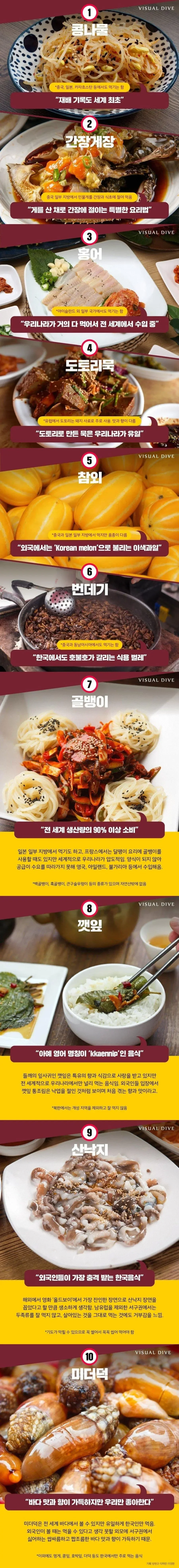 한국인들에게는 익숙하지만, 외국인들에게는 신기하고 때로는 충격적인 음식들! 여러분은 이 중에서 어떤 음식을 좋아하시나요? 😊