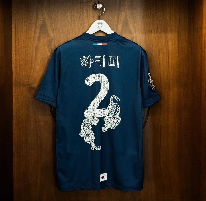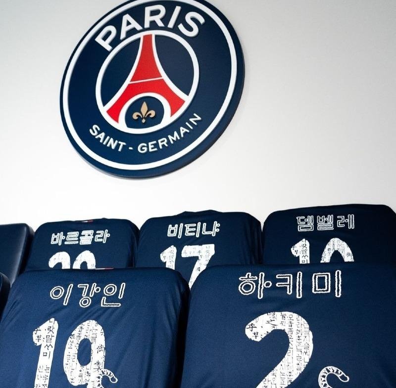 파리 생제르맹(PSG)이 한글날을 맞아 특별한 유니폼을 선보였습니다! 🇰🇷⚽ 사진 속 유니폼을 보면 선수들의 이름이 모두 한글로 적혀 있고, 등번호에도 한글 자음과 모음이 가득 채워져 있어요. 이강인 선수의 유니폼도 당당히 자리 잡고 있네요!