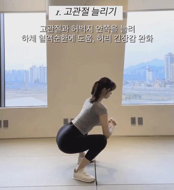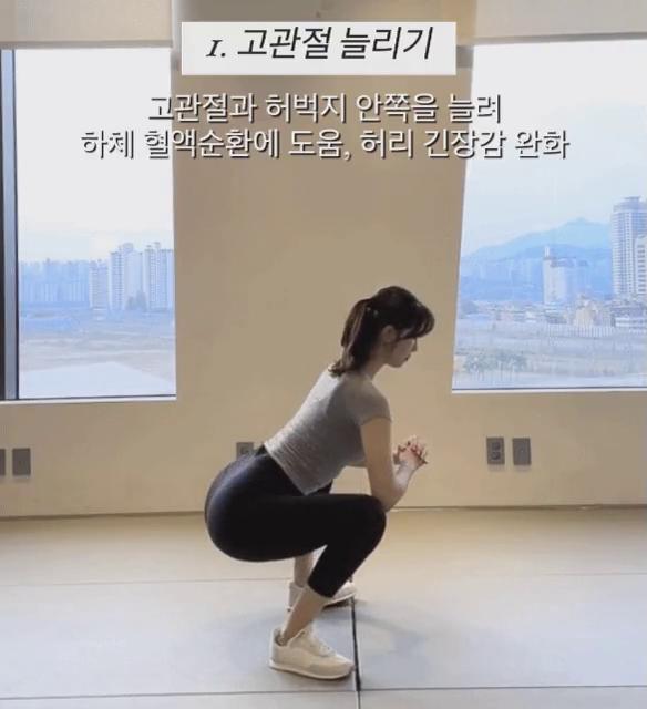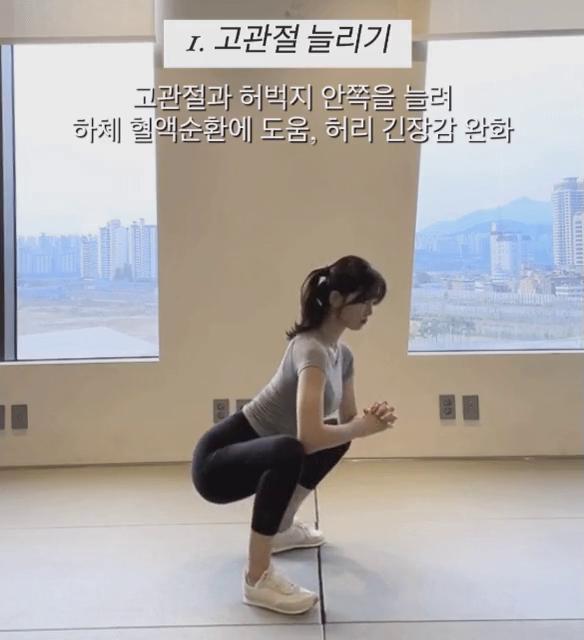 1️⃣ 스쿼트 자세로 골반 풀기 🔄
