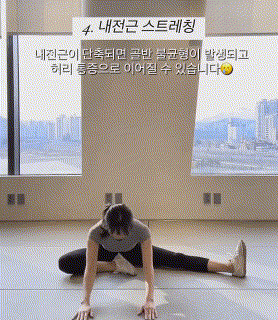- 엉덩이를 천천히 뒤로 당기며 골반을 열어줍니다.
