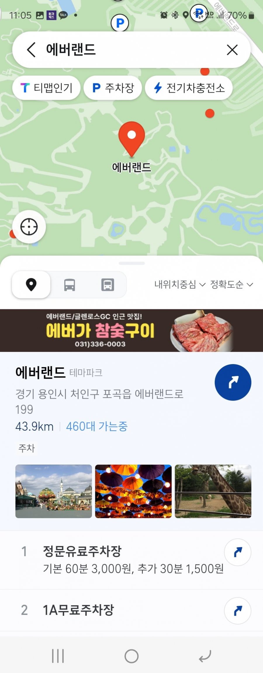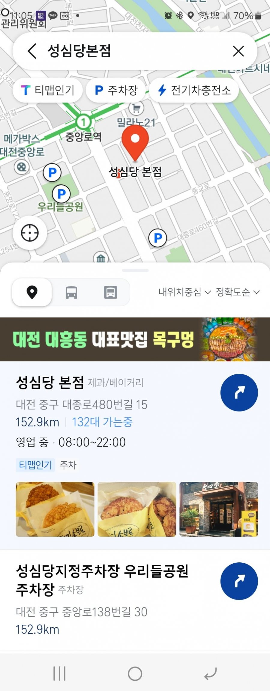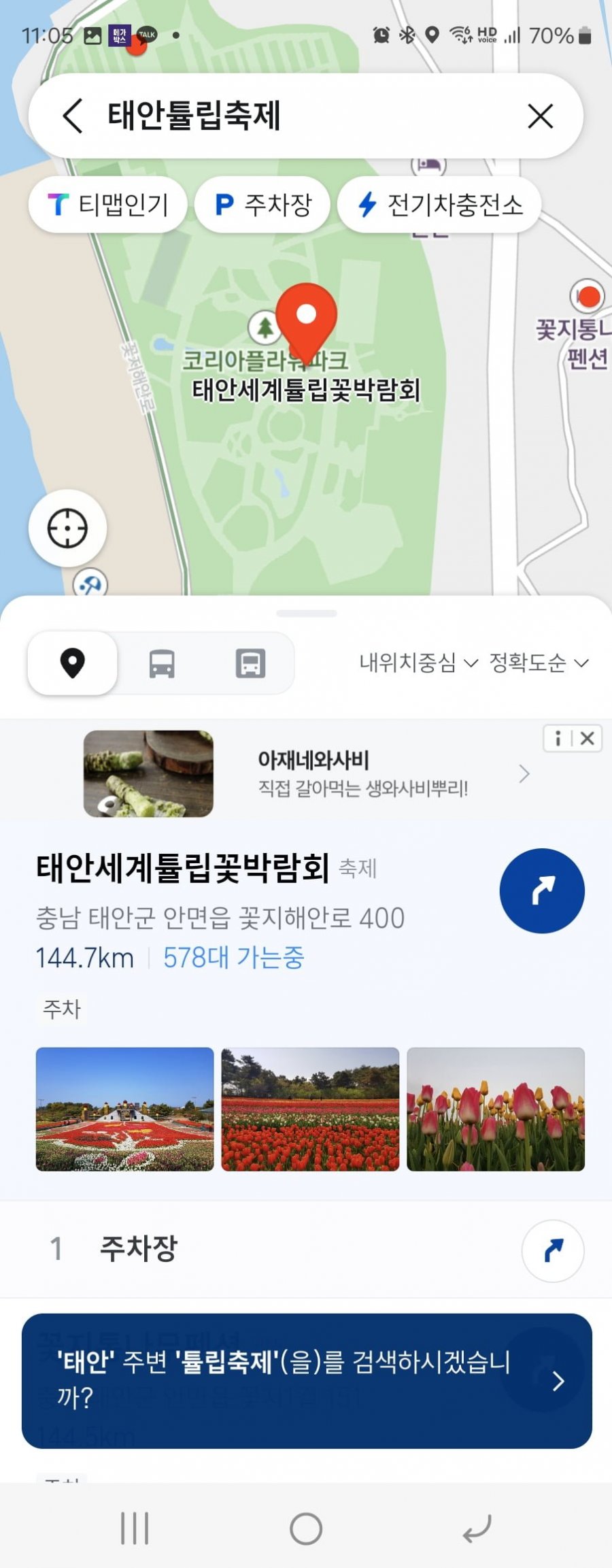 현재 성심당 에버랜드 태안튤립축제 TMAP 현황입니다