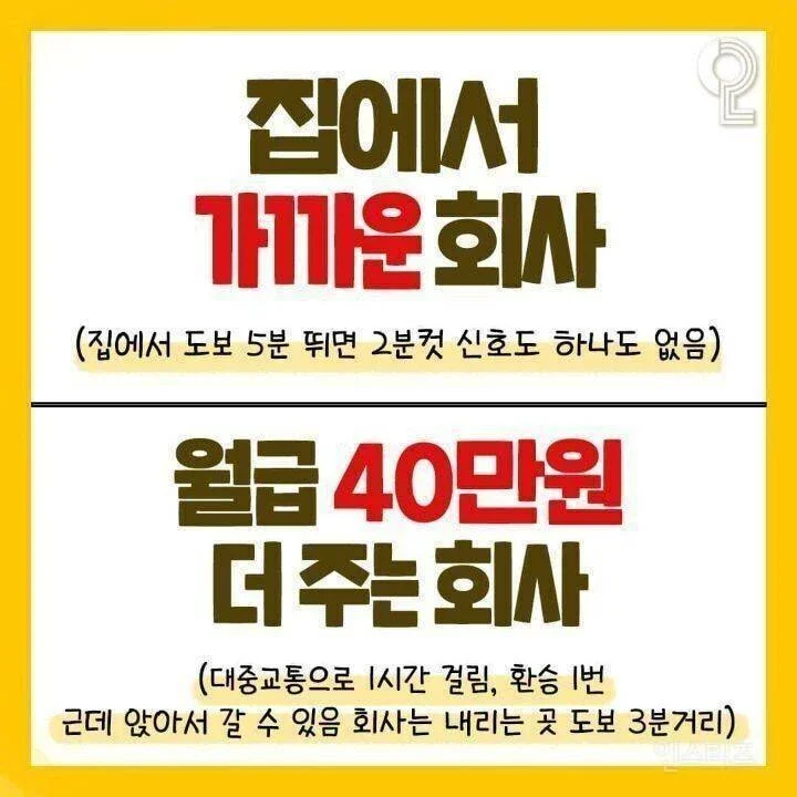 ✅ 월급 40만 원 더 주는 회사 (출퇴근 1시간, 환승 1번)