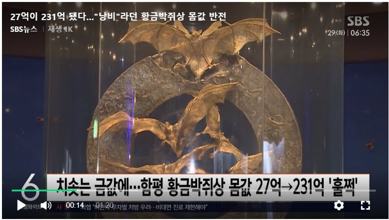 27억 원에서 231억 원으로 평가된 황금박쥐상! 😲 이 뉴스, 많은 사람들을 놀라게 했습니다. 한때 치솟는 금값 때문에 재조명된 것 같지만, "금값이 9배나 뛰었다?"는 건 사실과 조금 다르다는 의견도 많죠. 🤔
