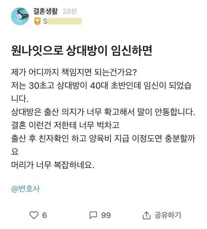 원나잇으로 상대방이 임신한다면 이라는 질문인데,