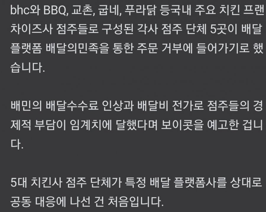🔹 치킨 브랜드들이 단체 행동에 나선 건 처음